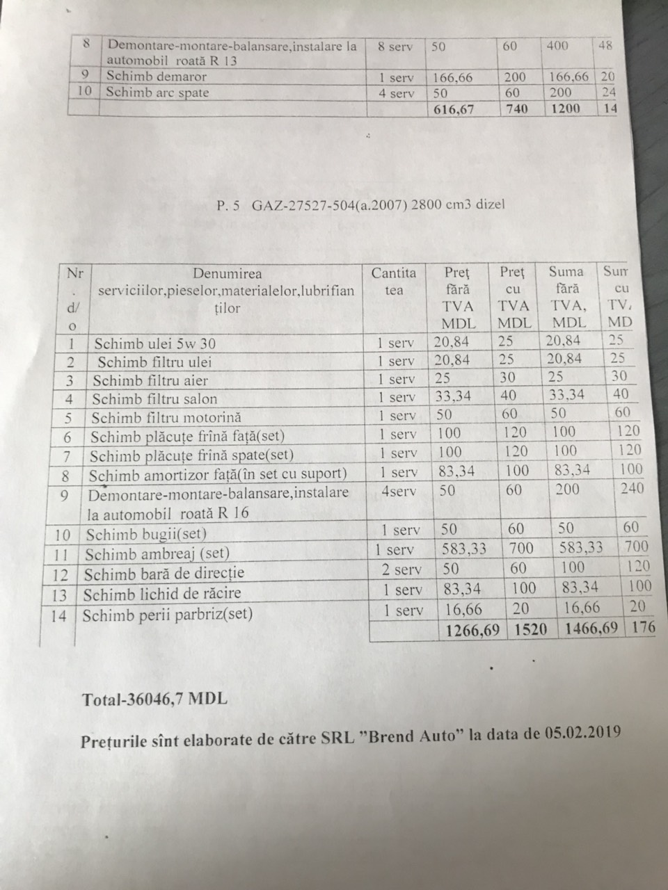 Servicii de deservire tehnică și reparație auto a autoturismelor CSP Soroca