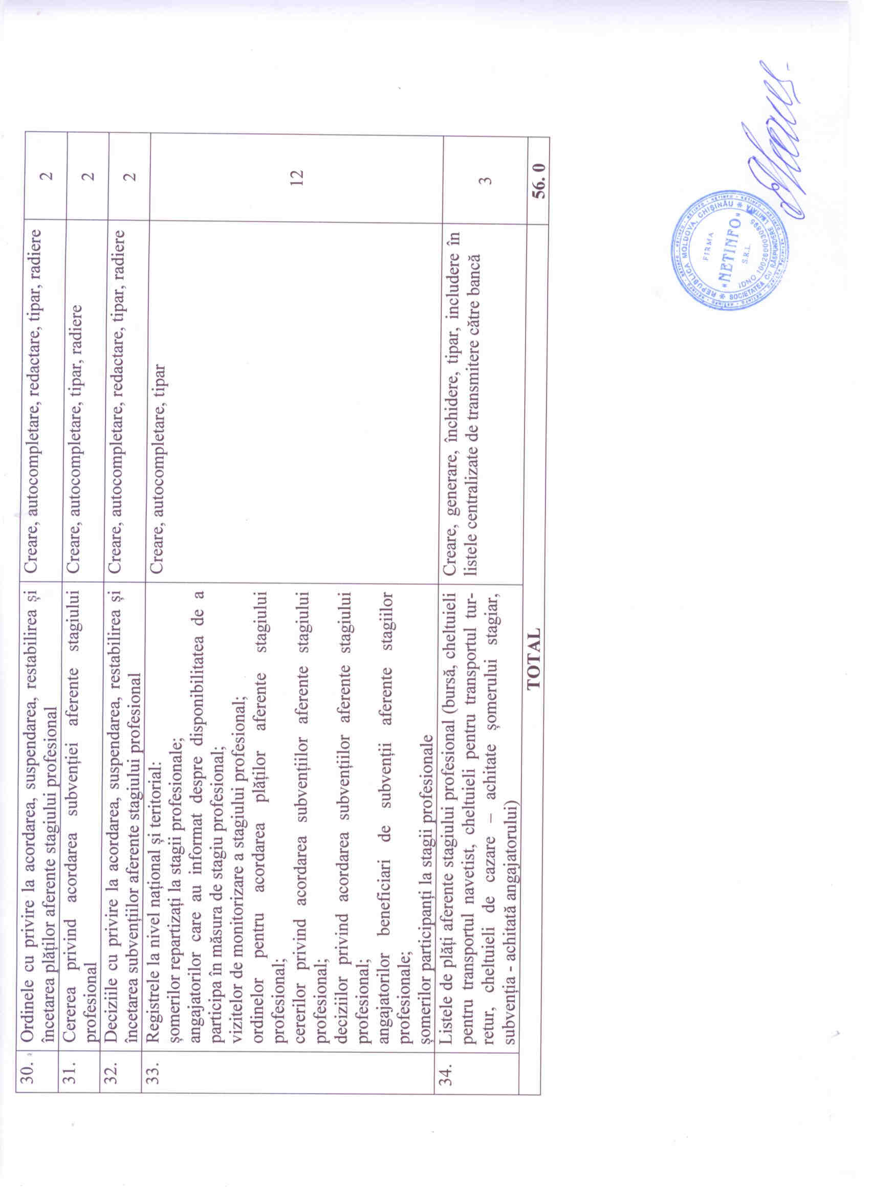 Achiziționarea serviciilor de ajustare a softului aplicativ din cadrul SIA Piața Forței de Munca, inclusiv: 2. Desfășurarea instruirii la locul de muncă în cadrul unității, conform art.33 al Legii nr.105/2018