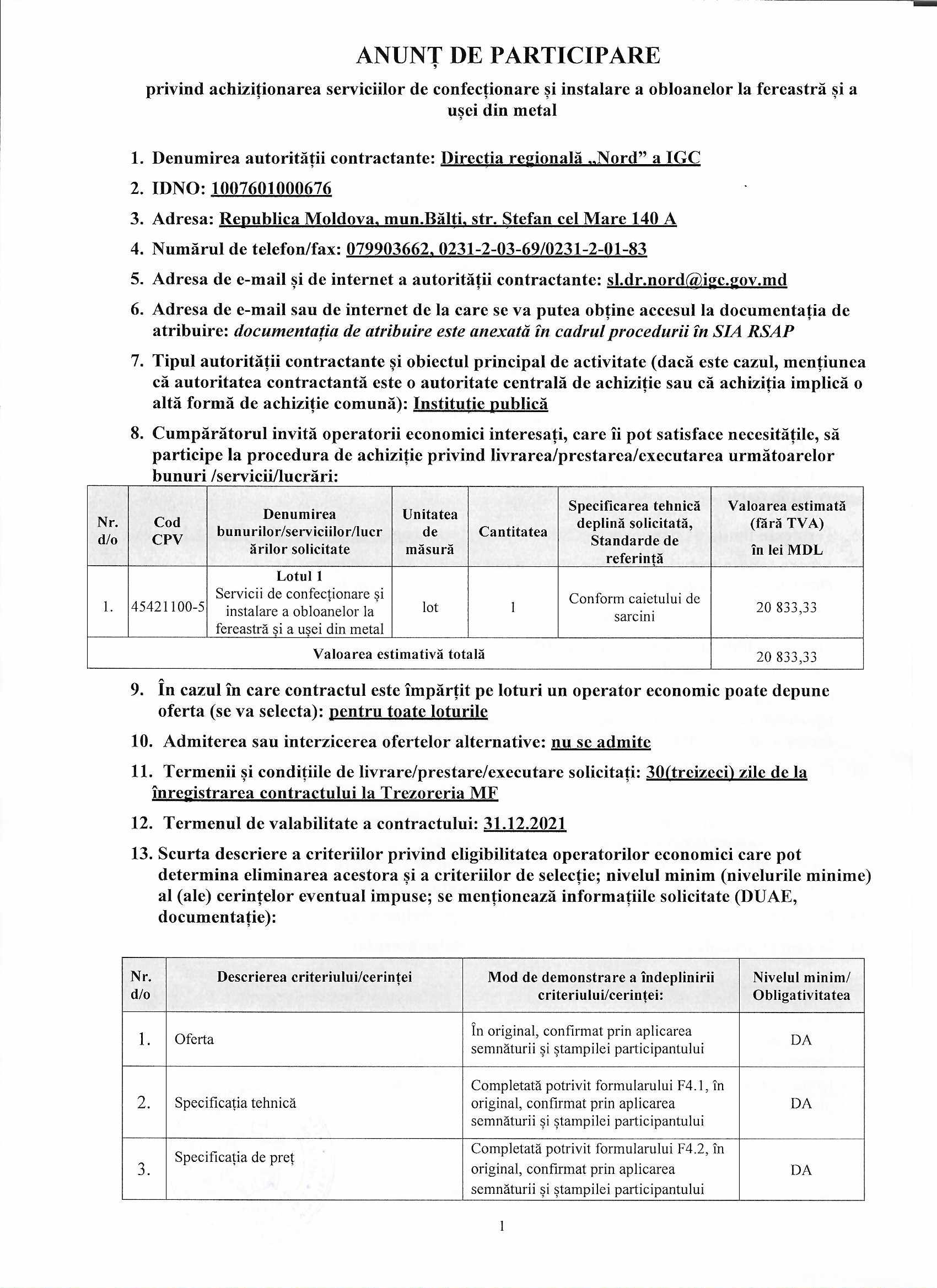 This procedure is carried out without auction. Your offer is final and must contain the entire list of required documents.