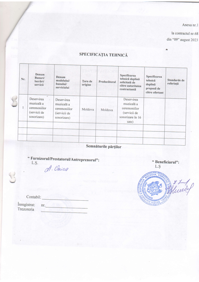 Deservirea muzicală a ceremoniilor (servicii de sonorizare în 16 sate)