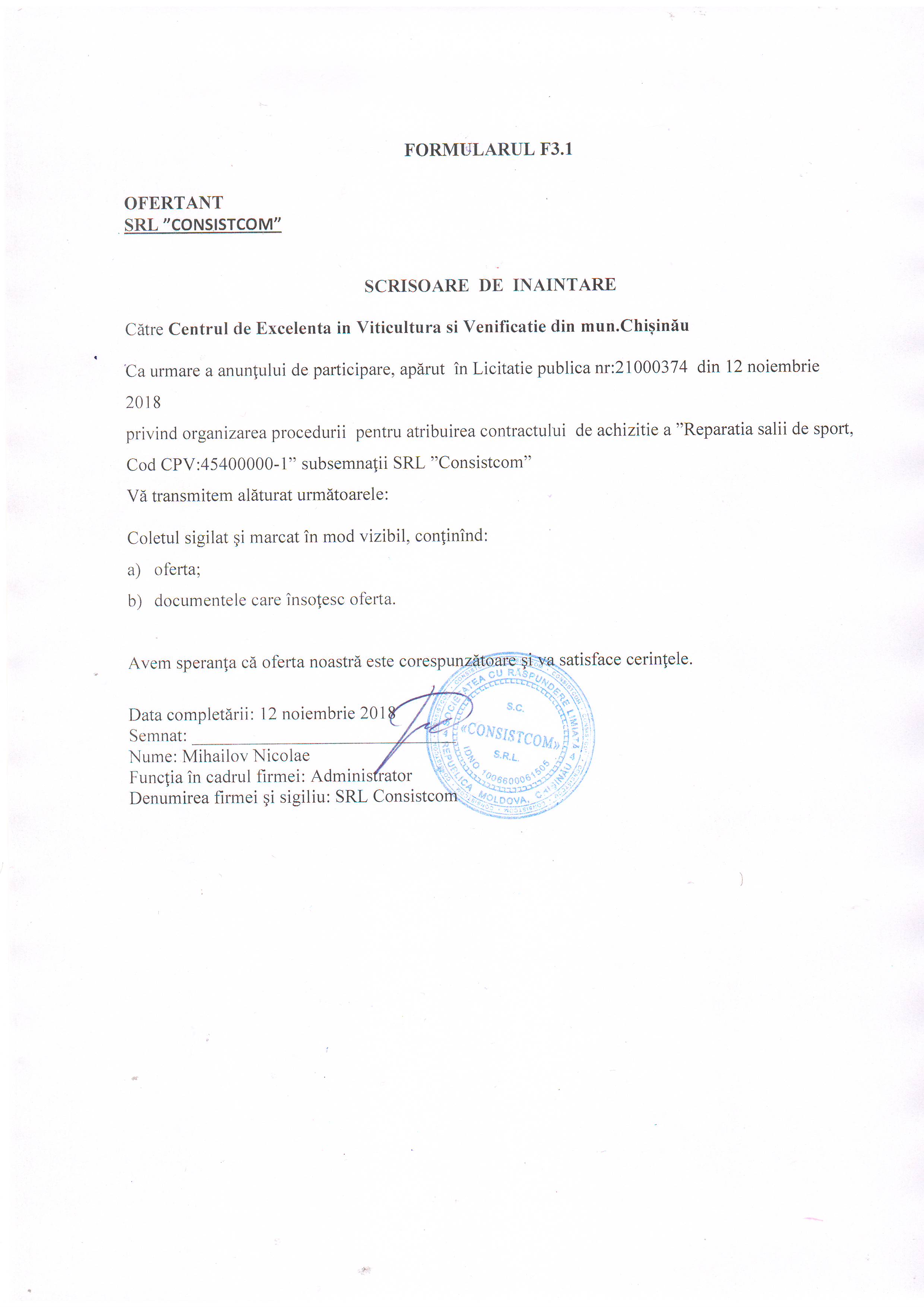 Documentele de tipul "documente de calificare", "propunere financiară" și "ilustrare" vor fi vizibile doar atunci cînd oferta va obține statutul "în considerare".