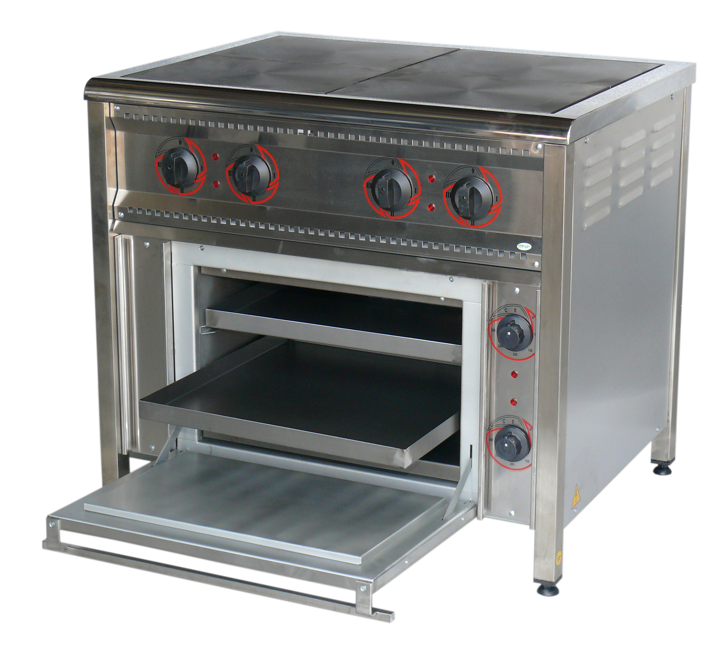 Plită electrică industrială cu 4 ochiuri cu rolă, acoperită, cu oțel inoxidabil