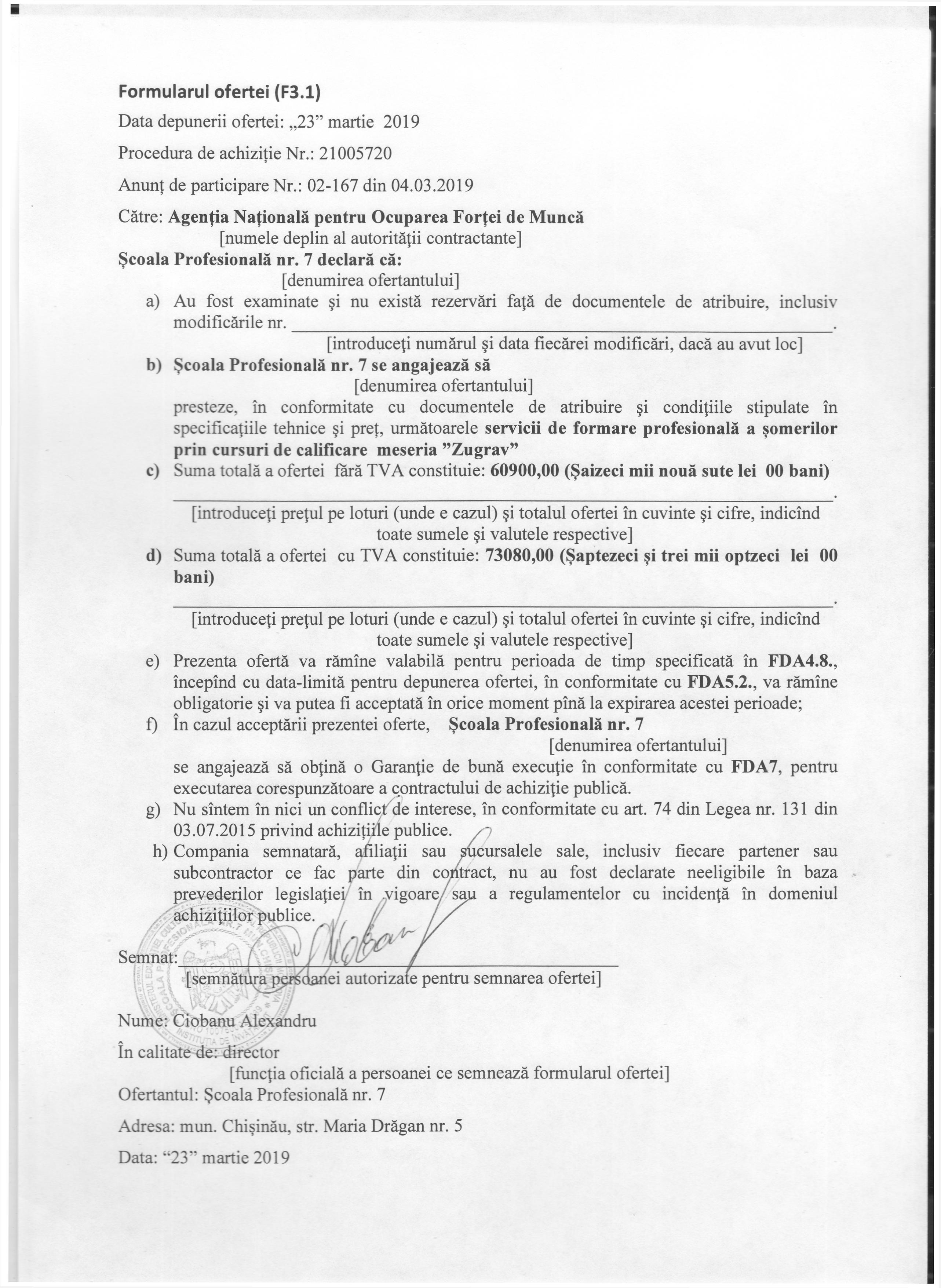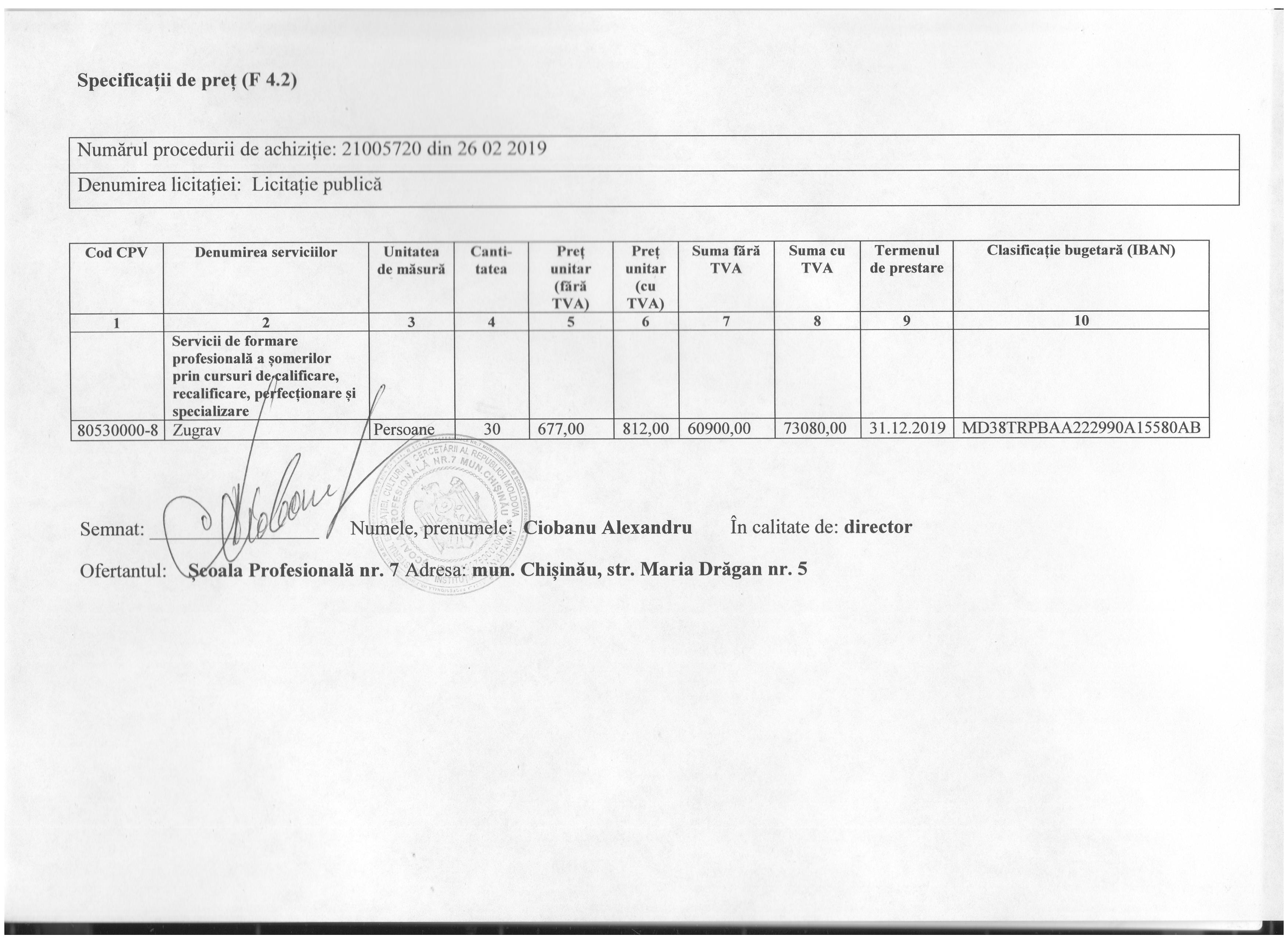 Preţul ofertei: