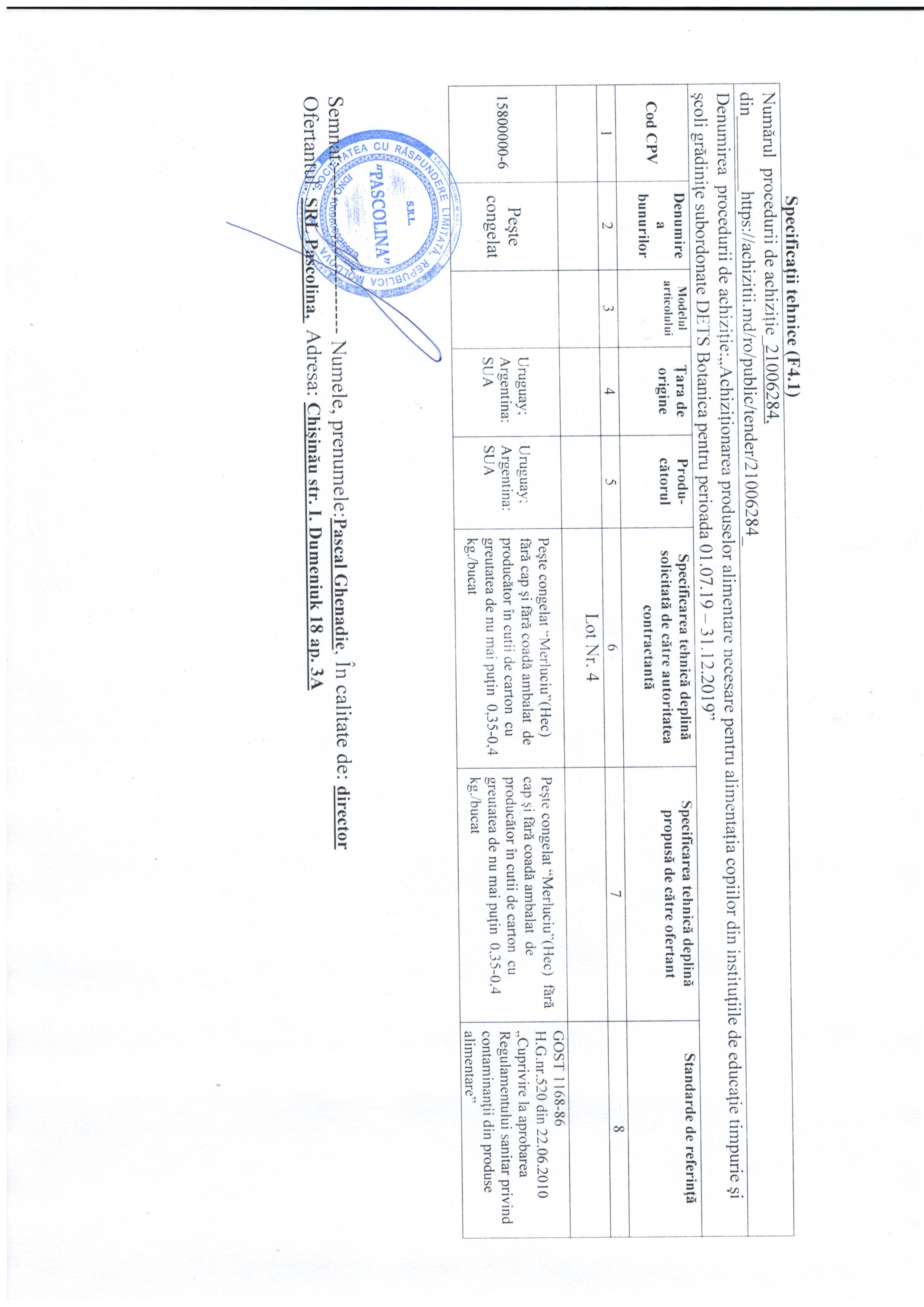 Motivul: Propune cel mai mic preț și corespunde cerințelor stipulate în caietul de sarcini