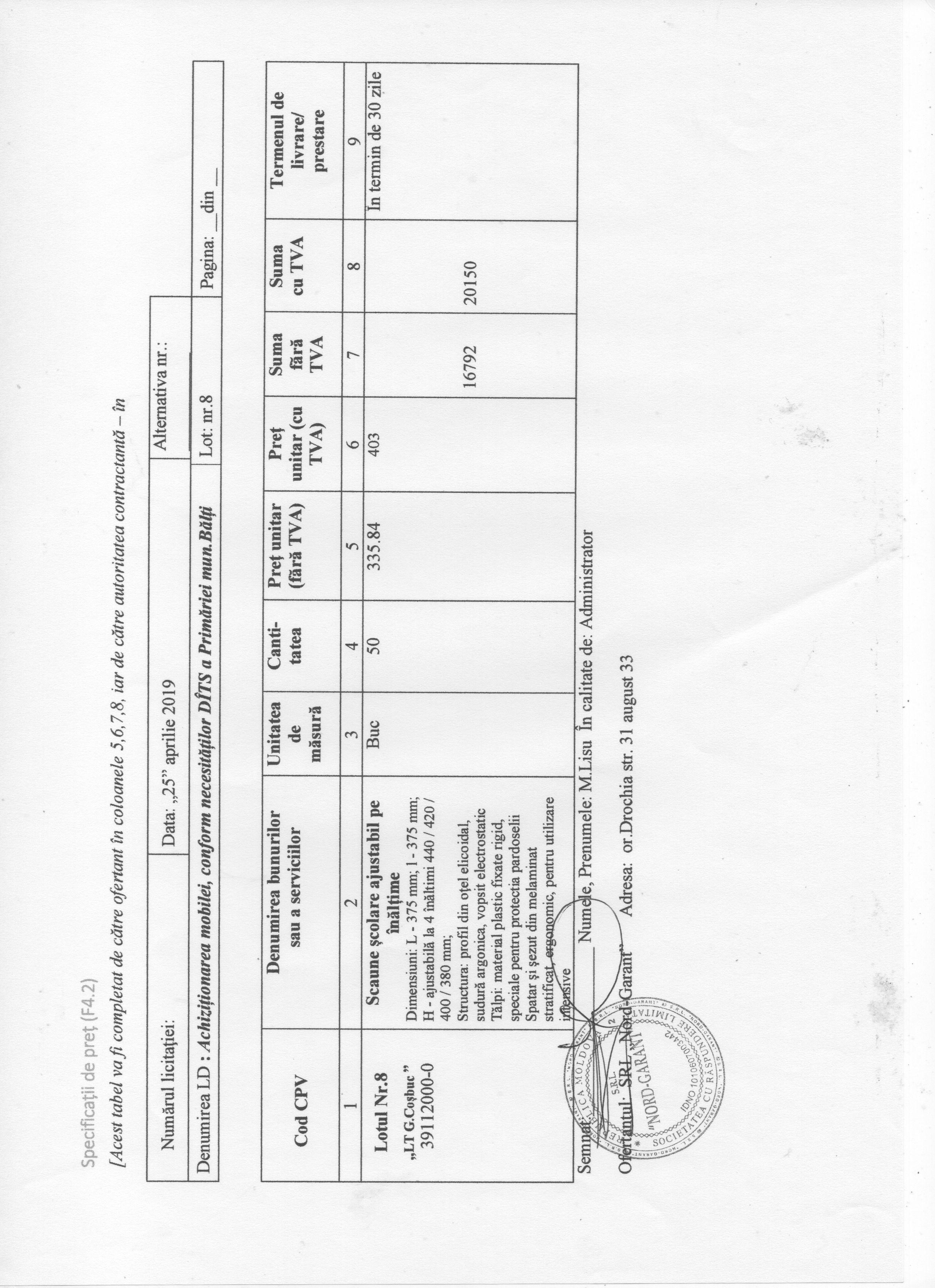 Preţul ofertei: 16 792 MDL