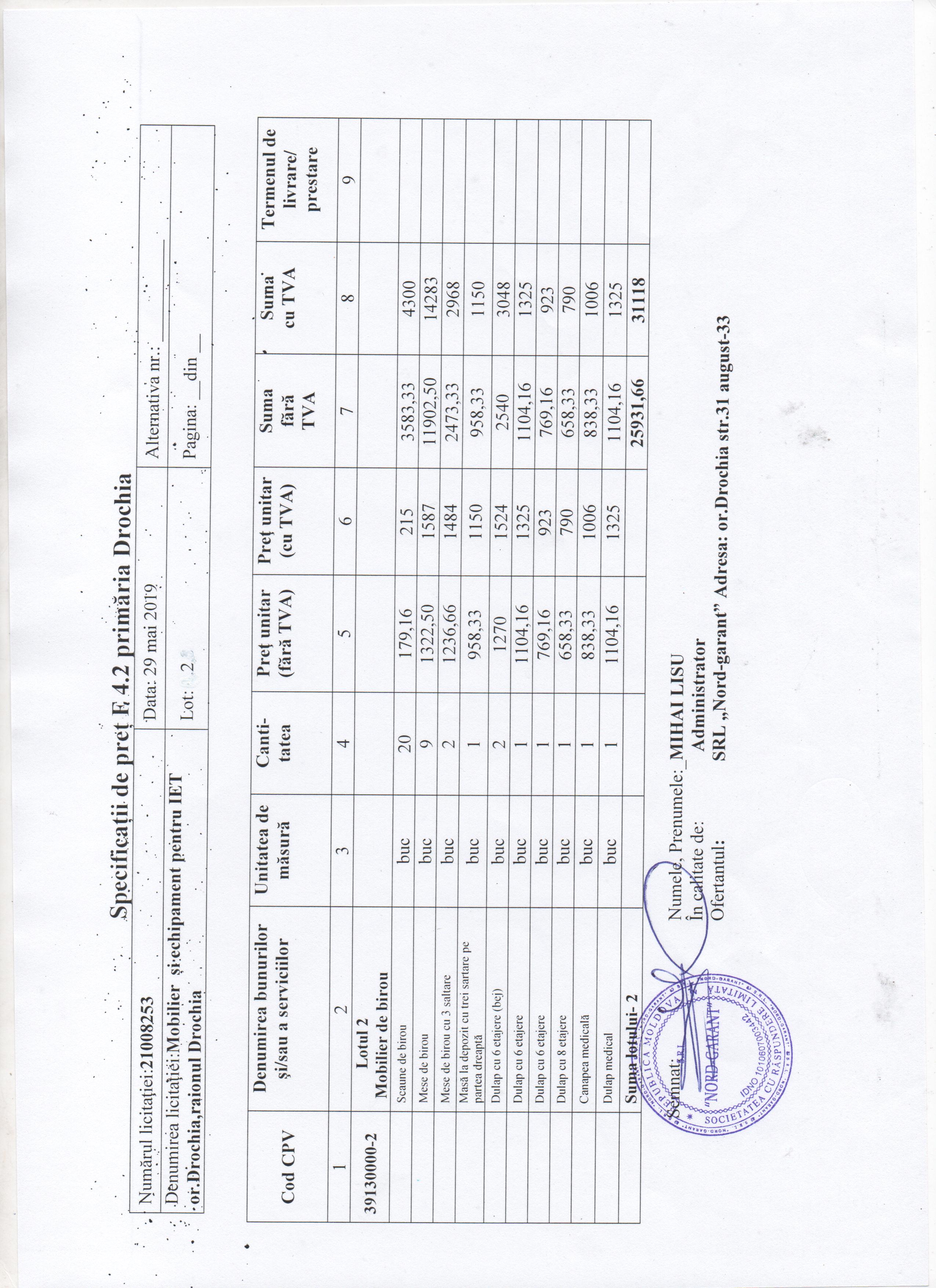 Mai jos sunt ofertele participanților, documentele la oferte le puteți vedea făcând clic pe simbolul mapei.