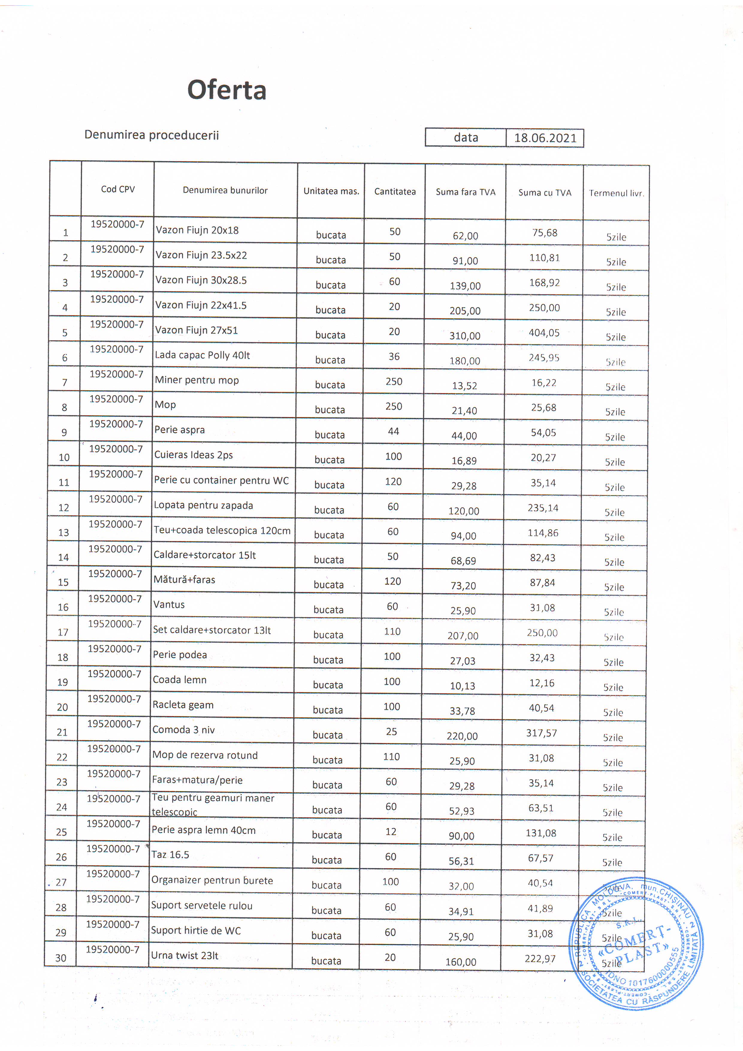 Mai jos sunt ofertele participanților, documentele la oferte le puteți vedea făcând clic pe simbolul mapei.