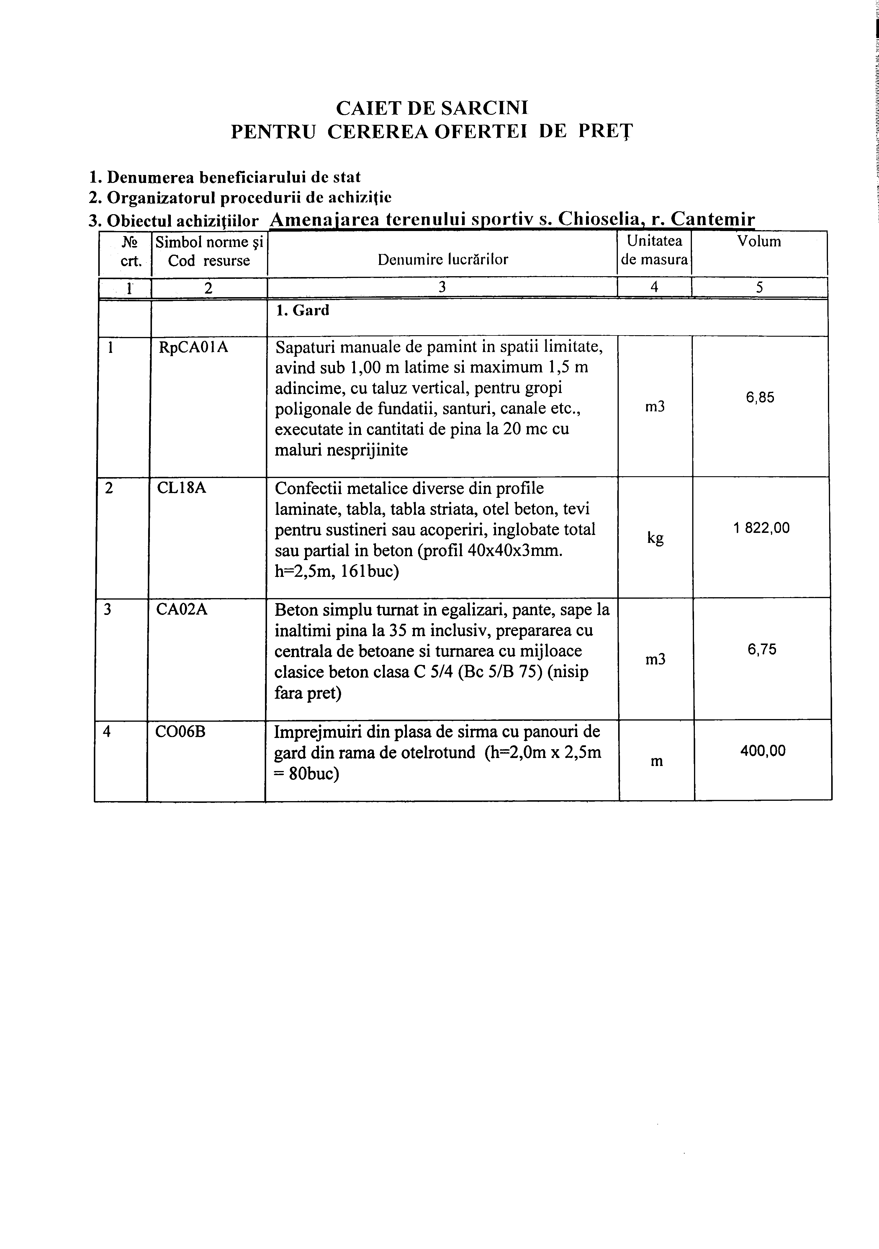 Lotul nr. 1 - Amenajarea terenului sportiv din satul Chioselia, raionul Cantemir