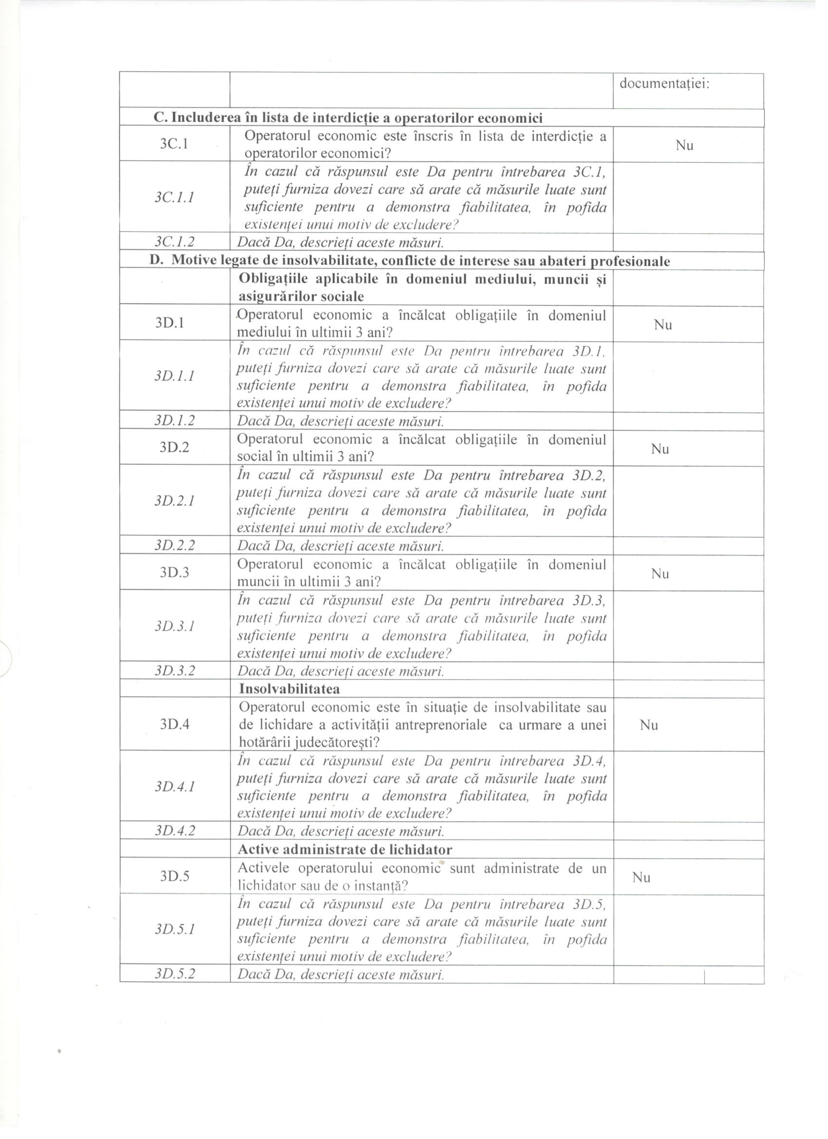 Aceasta procedura se va desfășura fară licitație electronică. Oferta Dvs. este finală și trebuie să conțină toată lista de documente cerută de documentația de atribuire.