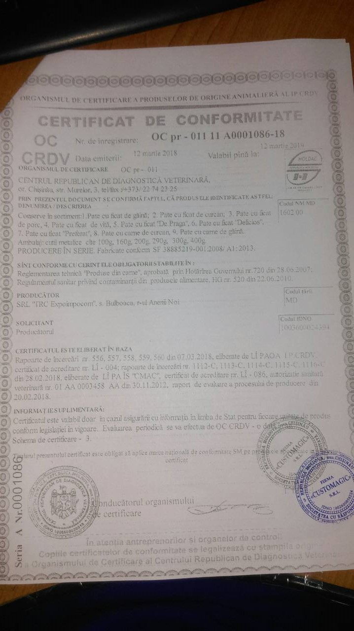 Pateu din ficat si carne (pasare si porc) in cutii de tinichea a cite de 0.3kg