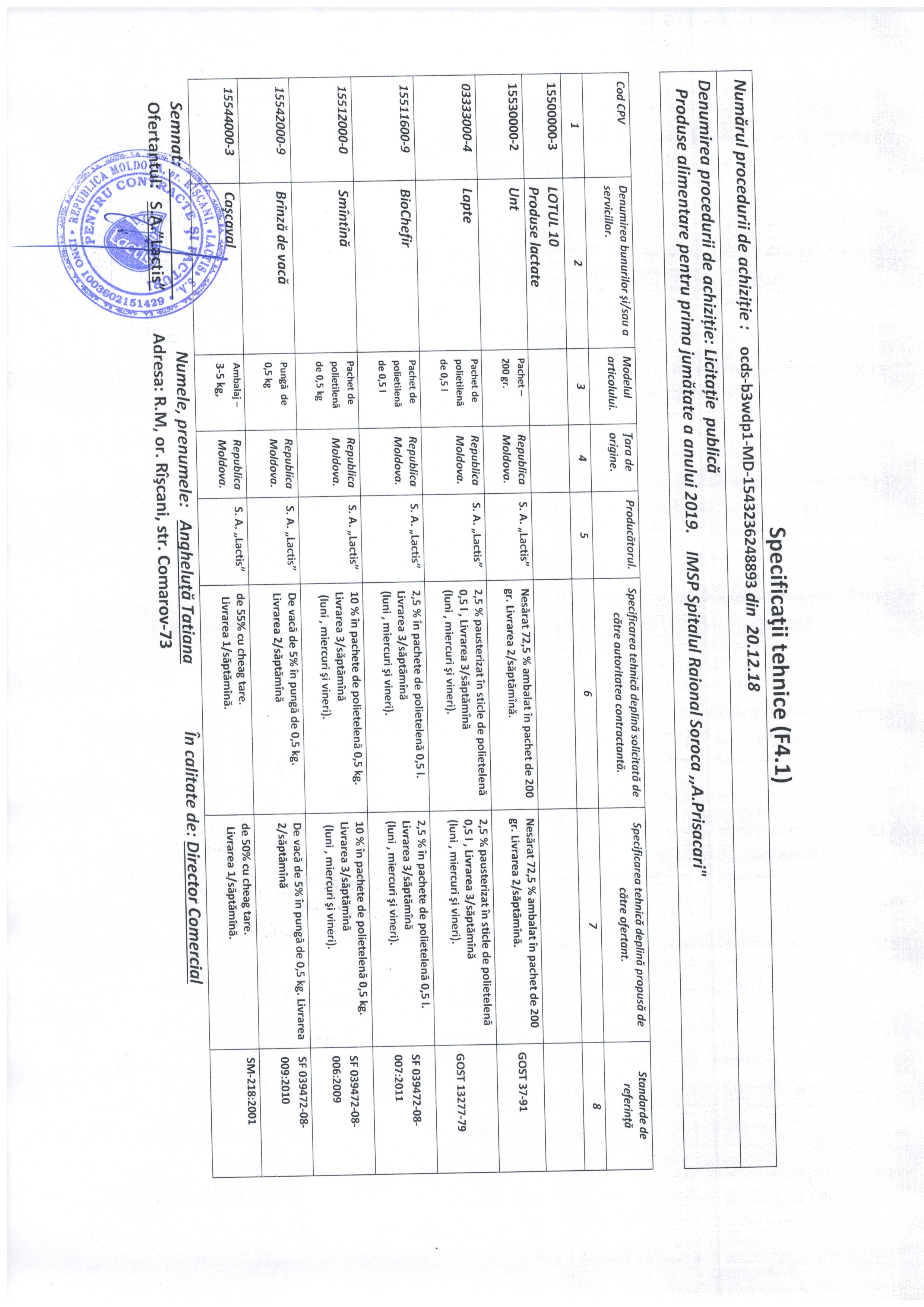 Lapte CPV: 15900000-7 - Напитки, табак и сопутствующие продукты