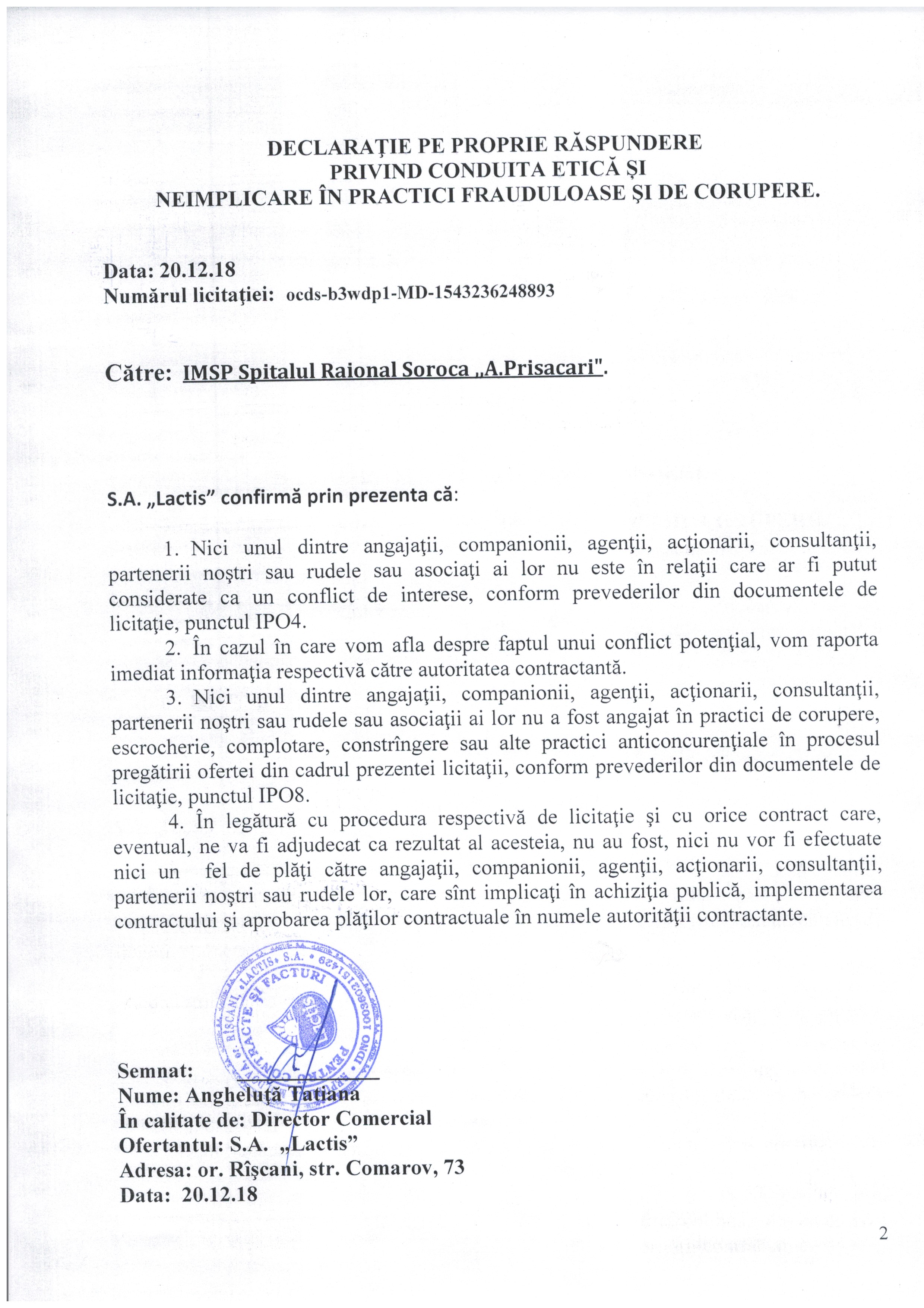 Причина: Decizia de atribuire a contractului de achiziţii publice Nr.2 din 04.01.2019