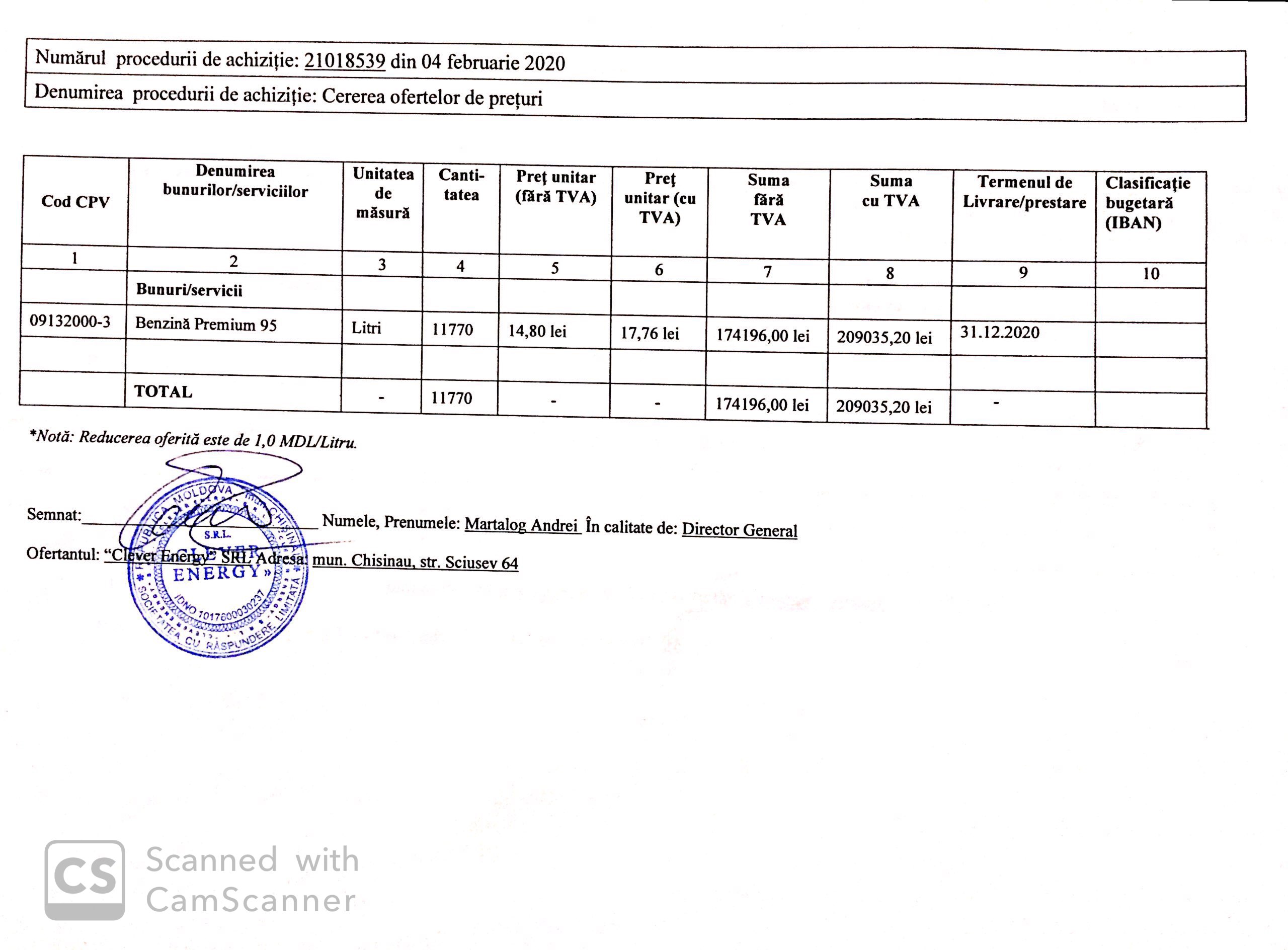 Причина: Motivul respingeri ofertei „Clever Energy” SRL :