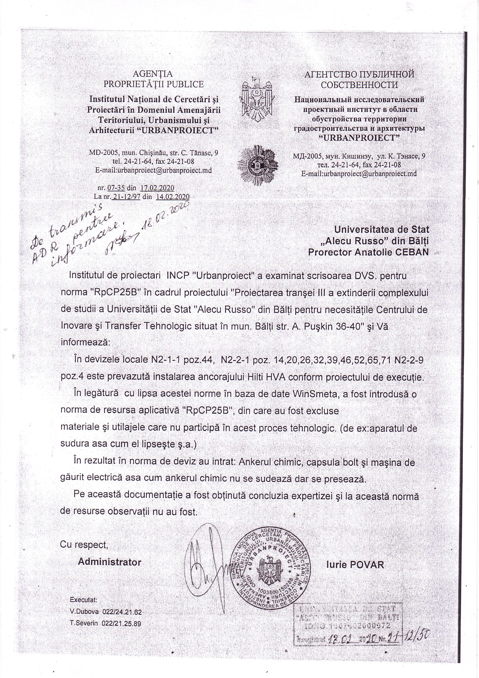 Extinderea complexului de studii al Universității de Stat Alecu Russo din Bălți, tranșa III, pentru necesitățile Centrului de Inovare și Transfer Tehnologic din str. Alexandr Pușkin nr. 36-40, mun. Bălți, blocul nr. 4 și nr. 5 (etapa finanțată din FNDR) în cadrul proiectului Crearea în municipiul Bălţi a Centrului de inovare si transfer tehnologic din regiunea de dezvoltare Nord