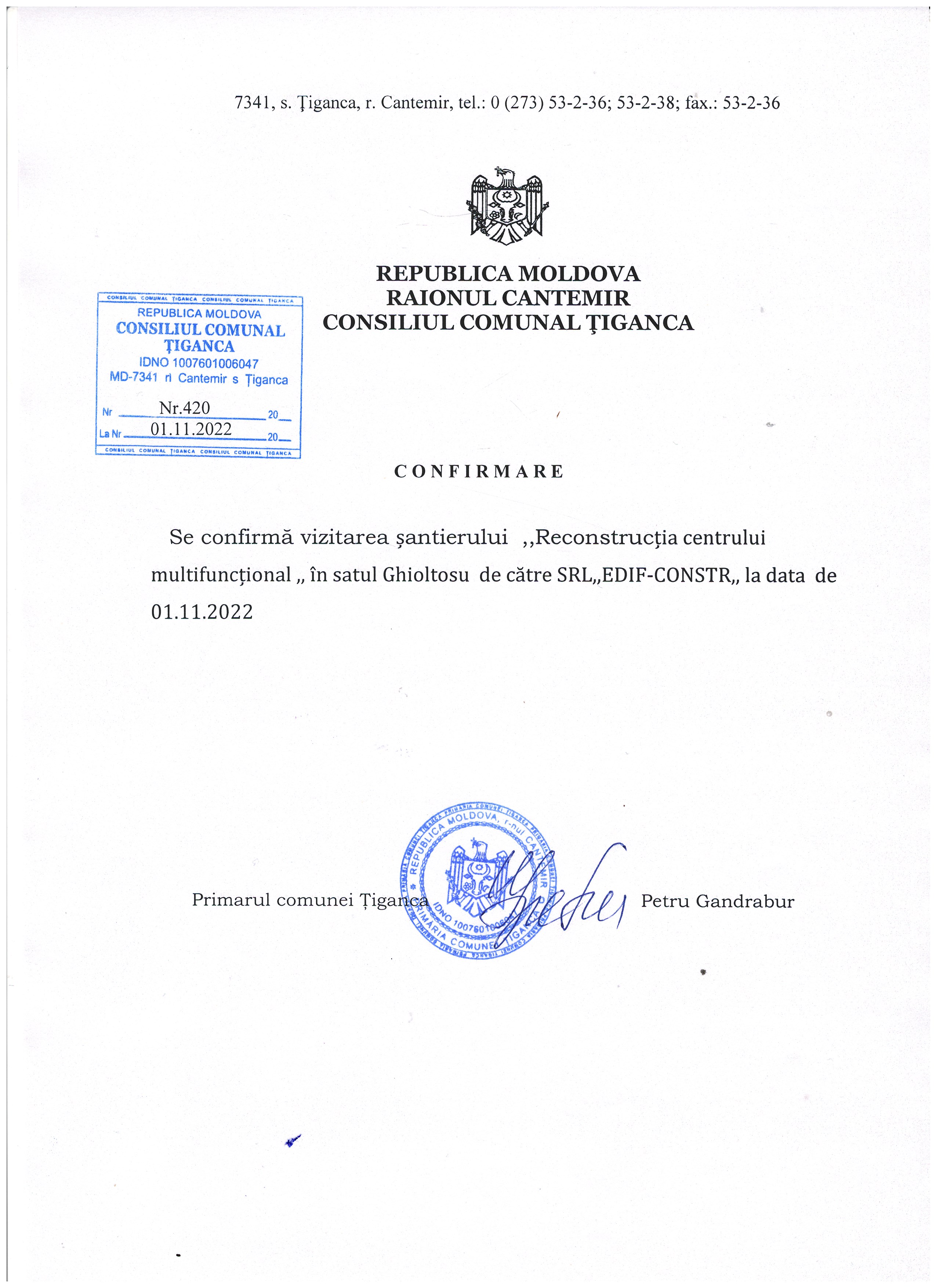 achiziționarea lucrărilor de „Reconstrucția Centrului multifuncțional din s. Ghioltosu, com. Tiganca, r-nul Cantemir„