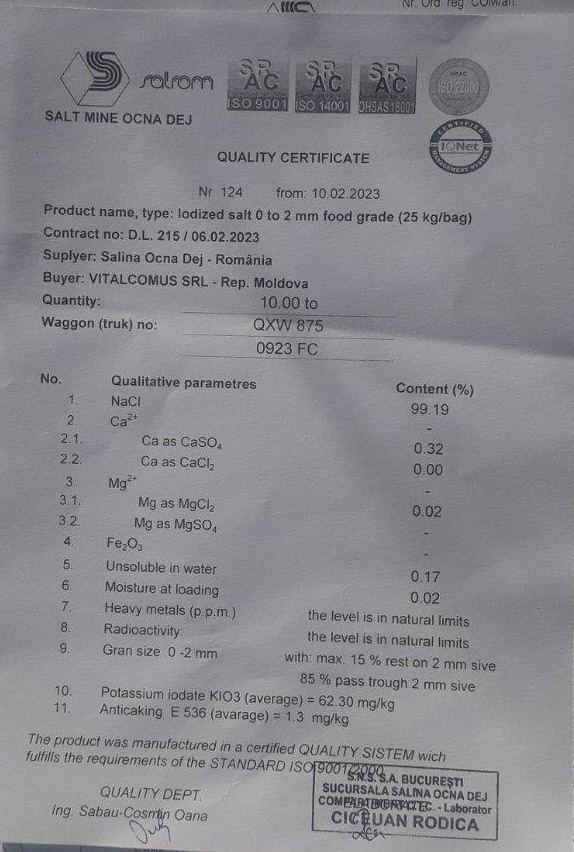 Sare de bucătărie (alimentară -iodată) în pachete1kg